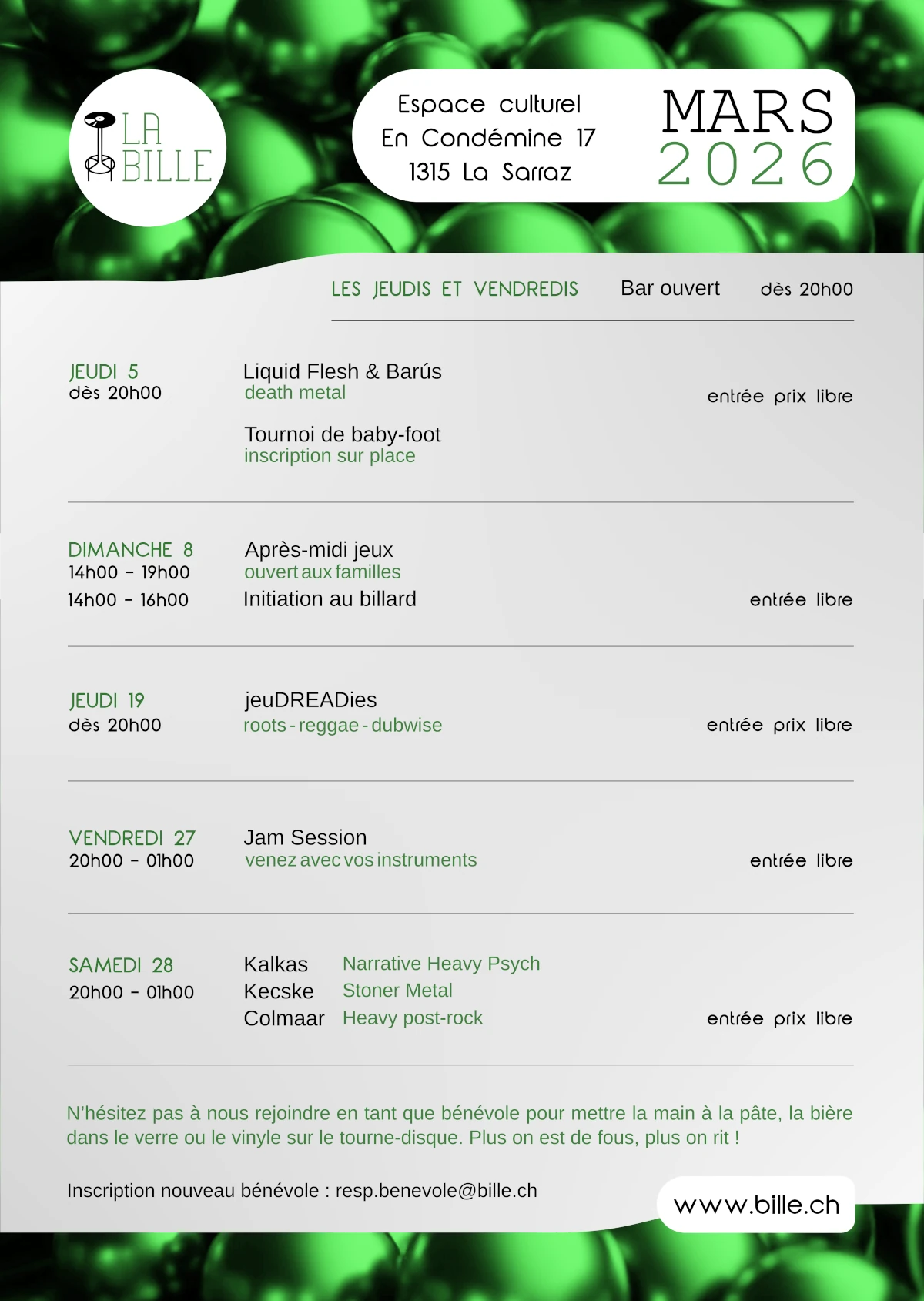 Souper de soutien pour La Bille (apéro, pizzas, jam, tombola)